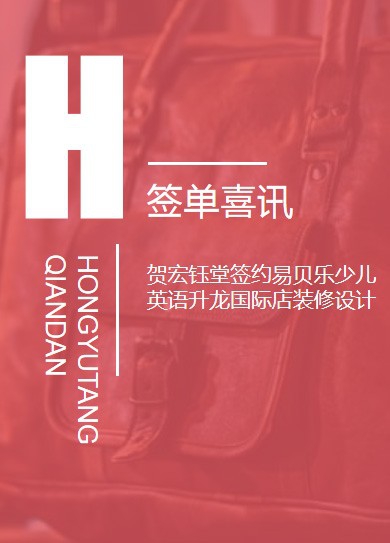 標簽: 律師辦公室裝修 律師事務所裝修設計 READ MORE千金難買好搭檔,易貝樂開工忙忙忙!賀深圳宏鈺堂裝飾順利簽約知名少兒英語連鎖培訓機構——北京易貝樂鄭州升龍國際店。此次是宏鈺堂繼嵩山路店、中原萬達店之后,與易貝樂的第三次合作。一切為了孩子,用心做教育,用心做工程,宏鈺堂是您最值得信賴的合作伙伴!