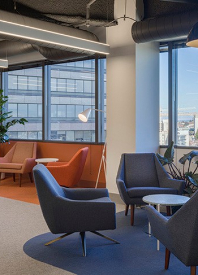 標(biāo)簽: 融合餐廳裝修設(shè)計(jì) 主題餐廳裝修方案 READ MORE科技的觸角無處不在,解決著人們身邊的各種麻煩,那么科技公司的辦公室都是什么樣的呢?今天鄭州宏鈺堂裝飾小編要為大家推薦的是1200平時(shí)尚多彩醫(yī)療科技公司辦公室裝修設(shè)計(jì)案例。總部位于西雅圖的98point6是一家遠(yuǎn)程醫(yī)療初創(chuàng)公司,它的平臺(tái)將臨床醫(yī)生與人工智能結(jié)合起來,提供基于文本的醫(yī)療服務(wù)。新擴(kuò)張的樓層位于25樓,站在這里,西雅圖的市中心、埃利奧特海灣、以及雷尼爾山盡收眼底。而辦公設(shè)計(jì)團(tuán)隊(duì)也利用這得天