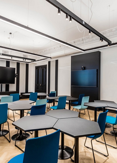 標簽: 高檔料理餐廳裝修設計 高端餐飲店面裝修方案 READ MORE在國外新建辦公樓遠遠少于舊建筑改造,本案辦公室裝修設計的挑戰是將建于1898年的老建筑與現代辦公環境相結合,并與Vainu的當代品牌形象相契合。芬蘭軟件公司Vainu,是一家提供智能數據的軟件平臺公司,幫助客戶更精準的銷售和營銷推廣。下面就跟隨鄭州辦公室裝修公司宏鈺堂裝飾小編一起來欣賞時尚優雅的Vainu軟件公司辦公室改造設計裝修方案! 員工的參與,對于辦公場所設計至關重要。項目伊始,各