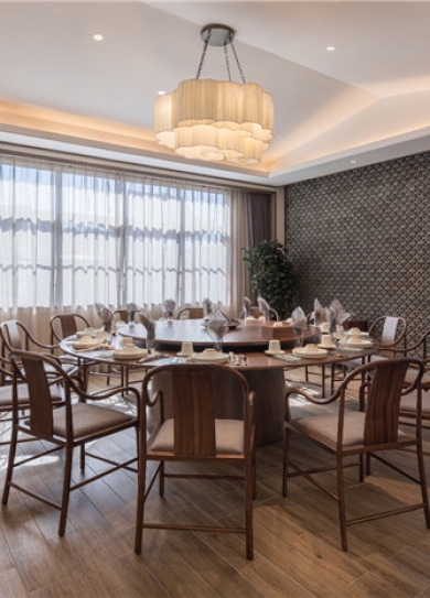 標簽: 鄭州工作室裝修設計 設計工作室裝修方案 READ MORE禪宗文化里,入門是悟道之始,有莊重的儀式。齋菜館門廳,引六祖慧能典故,無根菩提樹、銅制明鏡臺造景,以清簡、質樸、克制、自然,傳遞“應無所往而生其心”的大悟。佛法講究“廣度眾生”,一層餐飲空間也圍繞此主題展開。法相莊嚴達摩祖師坐禪雕塑,天花虛實結合菩提葉,輕便竹藤工藝吊燈,象征“凝聚智慧光華”菩提果,設計打造一個返璞歸真精神道場,以此開啟美學升華。今天鄭州餐廳裝修公司為您推薦的是福順齋中餐廳裝修設計