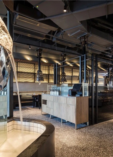 標(biāo)簽: 工業(yè)風(fēng)廠房裝修案例 辦公樓改造裝修設(shè)計(jì) READ MORE烤肉店流派極多,韓式燒烤則憑借多項(xiàng)優(yōu)勢(shì)在市場(chǎng)上獨(dú)領(lǐng)風(fēng)騷。今天要為大家推薦的漢陽(yáng)館烤肉大師是一家不用自己動(dòng)手烤肉的高級(jí)特色烤肉餐廳,下面就跟隨鄭州餐廳裝修公司宏鈺堂裝飾小編一起來(lái)欣賞吧!漢陽(yáng)館入門區(qū)域用柔和的燈光制造溫暖感去迎接每一位顧客。在弧形坡頂和上翹的屋檐外巧妙地注入小型的照明設(shè)備,去突顯黑色材質(zhì)與金屬色的高級(jí),營(yíng)造出高端大氣的就餐氛圍,且保留著順德古城的街巷阡陌的既視感。 每一格的