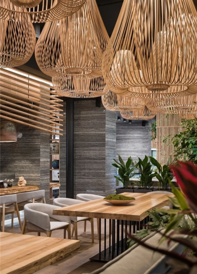 標簽: 連鎖餐飲店面裝修設計, 網紅餐飲裝修案例 READ MOREFujiwara Yoshi是一家擁有烏克蘭靈魂的日式餐廳。這是你不想離開的迷宮。在這里,美學與功能融為一體,管道變成燈,花朵從天花板上長出,苔蘚-從盤子上長出。這里是您休息眼睛,屏住呼吸并品嘗日本美食的地方。設計師的主要任務是傳達日本哲學,而不是與某些陳詞濫調大呼小叫。這家餐廳室內設計是日本規定的舒適程度,但帶有烏克蘭精神。下面就跟隨鄭州餐廳裝修公司宏鈺堂小編一起來欣賞吧!Fujiwara Yo