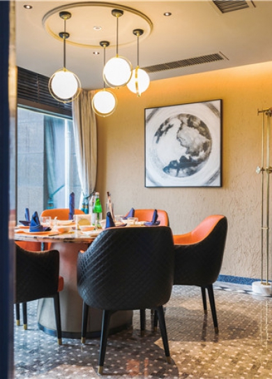 標簽: 辦公樓裝修設計 工業(yè)廠房改造設計 READ MORE半海是一家專注于海鮮食材的高端火鍋餐廳,該項目位于廣州市中心的CBD范圍,周邊遍布寫字樓和商業(yè)體。爭分奪秒的商業(yè)氣氛讓這一帶倍顯緊張的節(jié)奏,則項目也隨之定位成商務接待的場所,設計師希望通過設計的手法讓空間從理性的規(guī)劃中做出感性的氛圍,讓顧客在使用中能被環(huán)境緩解情緒,享受美食,享受時間。下面就跟隨鄭州餐廳裝修公司宏鈺堂小編一起來欣賞以海為主題的輕奢風海鮮火鍋餐廳裝修設計案例!海的主題需要既能被意識感