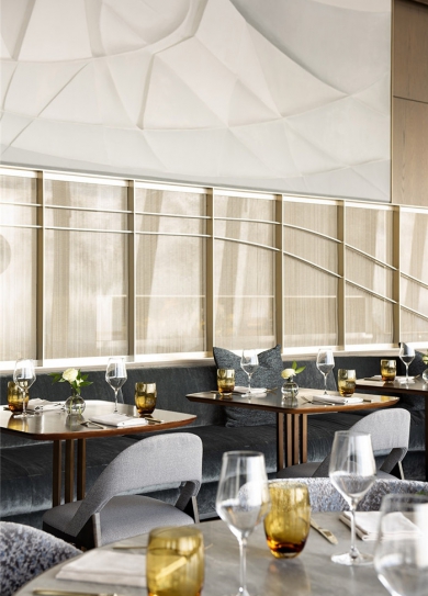 標簽: 辦公樓裝修案例 辦公樓改造裝修效果圖 READ MOREPeak是一家現(xiàn)代的美式餐廳,坐落在西半球最大的戶外觀景平臺——哈德遜廣場的“邊緣(Edge)”平臺的上方。巔峰餐廳位于哈德遜廣場30號的第101層,占據(jù)著整層空間,享有紐約市一覽無余的城市景觀。餐廳內(nèi)包含了一個用餐空間、一個雞尾酒吧、一個私人包間和一個活動場地。下面就和宏鈺堂小編一起來欣賞這家奢華與簡潔感并存的現(xiàn)代美式餐廳裝修設(shè)計方案分析!邁進這個大堂空間,映入眼簾的是以煙熏橡木為飾面的天花板和