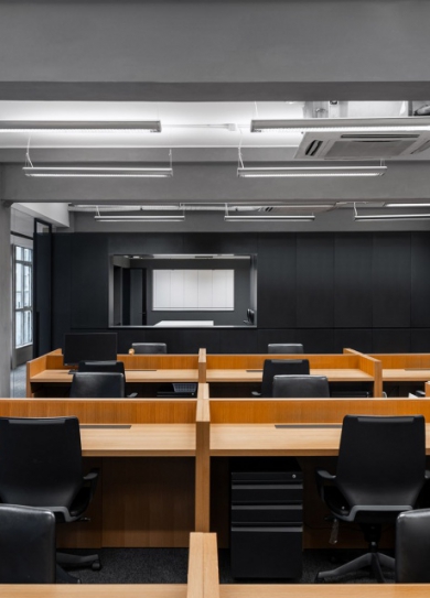 這是街頭時尚品牌——“HI PANDA”辦公樓的室內(nèi)設(shè)計與外觀設(shè)計。辦公樓分為3層,位于上海市中心。場地形狀豎長,建筑和前面停車場合計全長約80米。辦公樓場地北側(cè)有一個專有的中庭,(與市中心其他地方相比)擁有較為優(yōu)越的外部環(huán)境條件。下面就隨鄭州專業(yè)辦公樓裝修公司宏鈺堂裝飾一起來欣賞。 我們在做設(shè)計時,為了充分利用豎長的室內(nèi)外環(huán)境,將最主要的地面層視作室內(nèi)外連同的空間。具體手法是,拿出了一層的