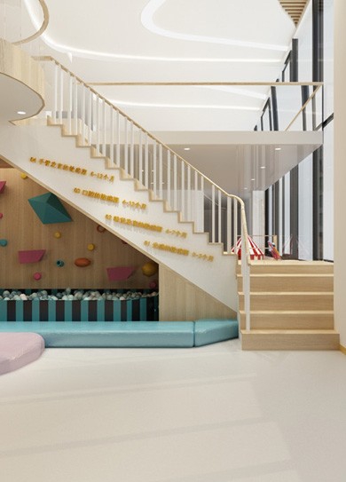 設計,講究藝術,同時設計也是一項很嚴謹的工作,因為涉及安全。在幼兒園裝修設計中,關于尺寸,我們除了要保證絕對的安全之外,還要參照幼兒的人體工學特點,做適合活動的空間。今天宏鈺堂小編為您帶來的是鄭州幼兒園安全設計規范之踏步與欄桿扶手尺寸要求!幼兒邁步的幅度和抬腿舉高都比成人小,因此,幼兒使用的樓梯踏步尺寸相應減小。其踏步高度不應大于0.15m,一般為0.13-0.14m較為適宜;每個梯度的踏步一般不
